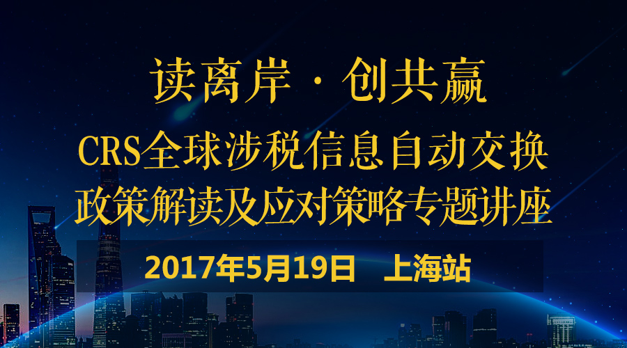 但正確應(yīng)對(duì)CRS的前提是,你必須對(duì)CRS有全面、深入的了解。鑒于CRS與我司客戶的利益息息相關(guān),為了讓廣大客戶更深刻地了解CRS,更好地應(yīng)對(duì)CRS可能帶給大家的影響,我司特別安排了一系列CRS專題講座。5月19日,我司將舉辦第五場(chǎng)(上海站)CRS講座,并邀請(qǐng)了多位資深老師為大家全方位解讀CRS,詳細(xì)對(duì)CRS的熱點(diǎn)政策、實(shí)施步驟及各類風(fēng)險(xiǎn)作深度的剖析解讀,并提出合理的解決方案,以幫助大家更好地應(yīng)對(duì)CRS。有興趣的朋友趕緊報(bào)名參加我們的講座,現(xiàn)場(chǎng)名額有限,先到先得哦~