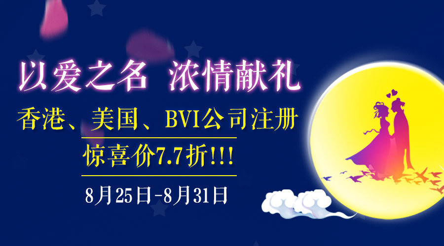 注冊(cè)香港、美國(guó)、BVI公司享7.7折