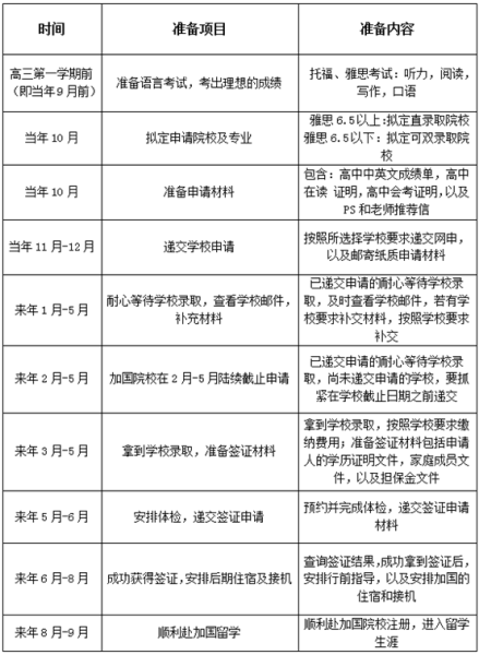 二、加拿大留學(xué)申請時間表--(高中畢業(yè)生--以9月入學(xué)為例)