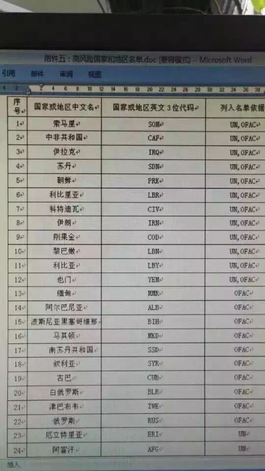 請操作離岸賬戶的客戶,不要跟24高風(fēng)險的國家發(fā)生貿(mào)易往來,現(xiàn)在銀行系統(tǒng)可以自動識別了。下附國家列表:
