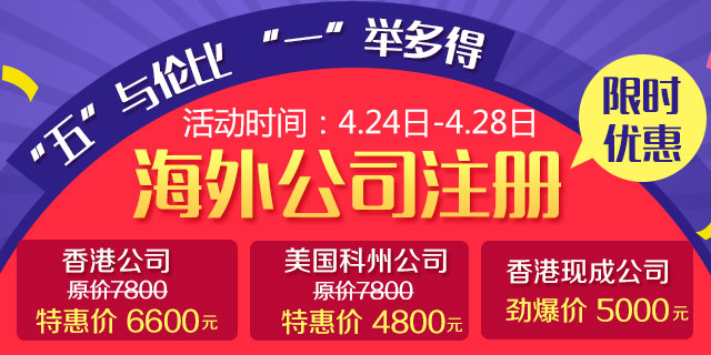 一重禮:活動(dòng)期間,注冊(cè)香港公司即可享受優(yōu)惠價(jià)6600元;注冊(cè)美國(guó)公司可享優(yōu)惠價(jià)4800元。