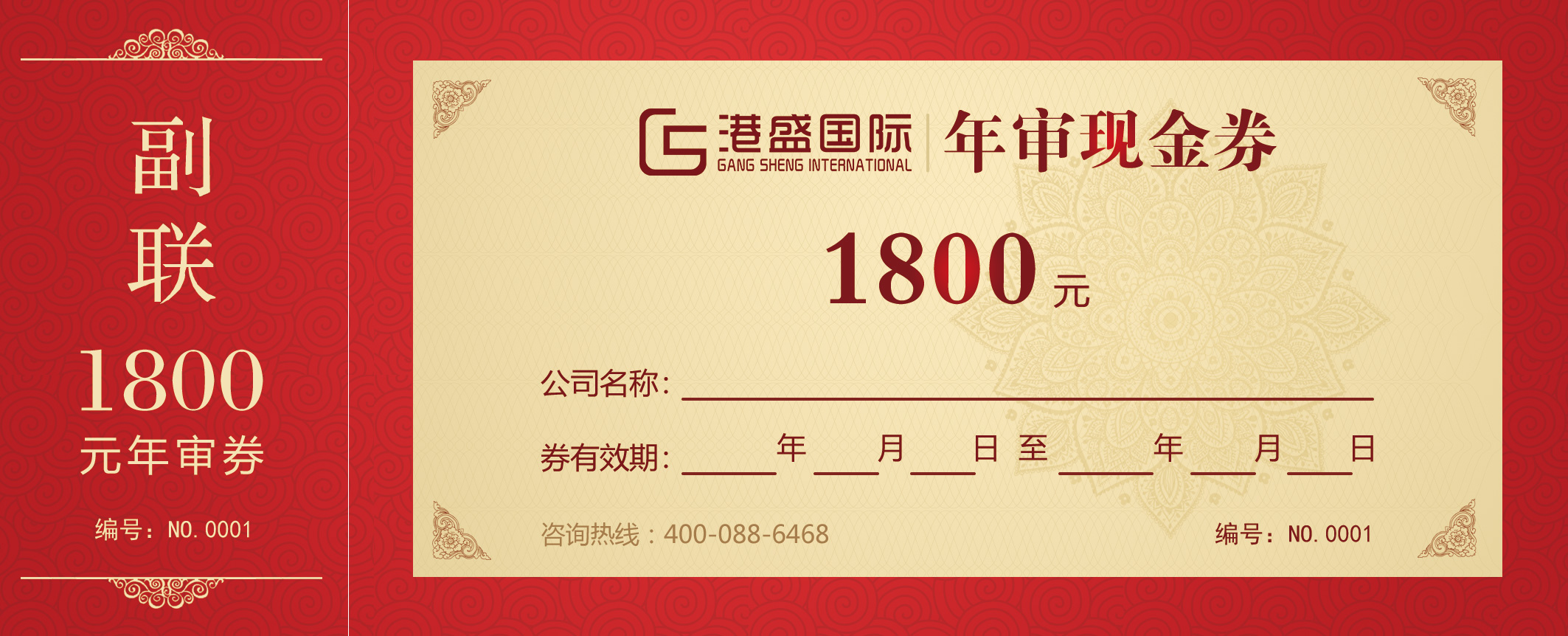 5、請妥善保管本現(xiàn)金券,屆時(shí)憑券抵扣1800元年審費(fèi)用,遺失不補(bǔ);