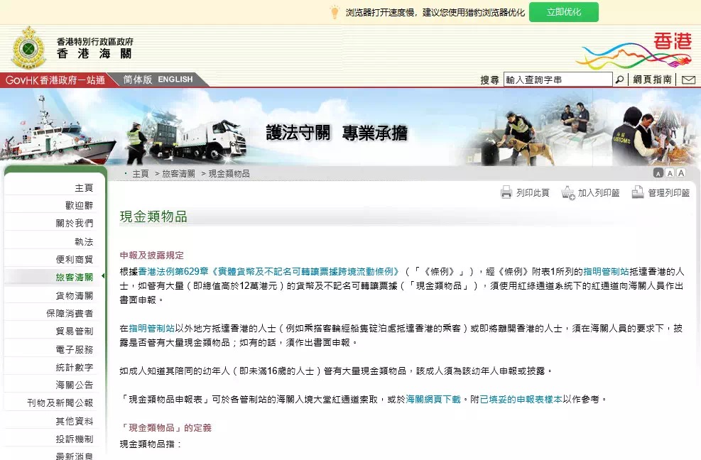 根據(jù)香港海關(guān)官網(wǎng)的信息,任何人若入境香港時(shí)身上攜帶總價(jià)值逾12萬元港幣(或等值外幣),均需向海關(guān)主動(dòng)申報(bào)。